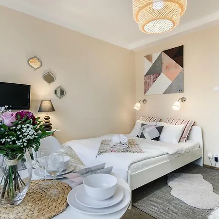 L'alloggio ha un angolo cottura che include un microonde, un bollitore elettrico e una vetreria. Gli ospiti che soggiornano in quest'appartamento possono godere della comodità di avere a disposizione servizi per la preparazione di tè/caffè. Il ristorante La Republica, che offre piatti della cucina ceca, si trova a una distanza di circa 7 minuti a piedi. La stazione della metropolitana Florenc dista 650 metri e l'aeroporto di Praga Václav Havel si trova a 26 minuti di auto da quest'alloggio.